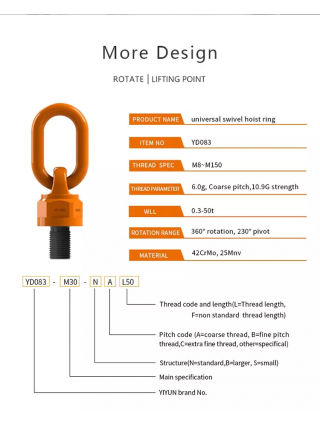 1. Rotacinė kėlimo kilpa, pagaminta iš specialaus legiruotojo plieno su precizišku kalimu, po specialaus terminio apdorojimo turi aukštą našumą.
